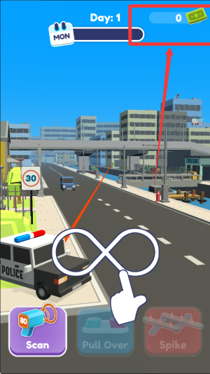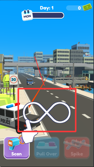 1、基础玩法是驾驶警车巡逻指定区域,发现违规车辆后使用测速仪取证或高速相机抓拍,完成罚款或扣分等处罚任务。