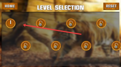 3、关卡选择界面,点击解锁的【LEVEL-1】,开始第一关,操控老虎完成任务,推进游戏进程。