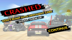 1、撞车后点【CONTINUE】,重新开始,驾驶武装赛车出发。