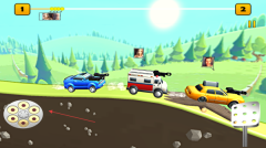2、在山地赛道,用武器射击对手(如救护车),避碰撞,超其他车。