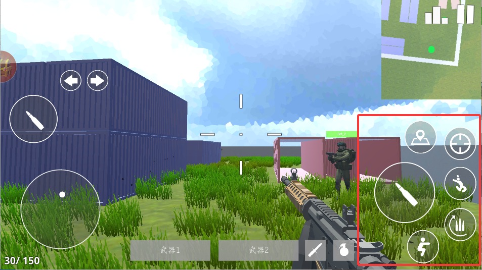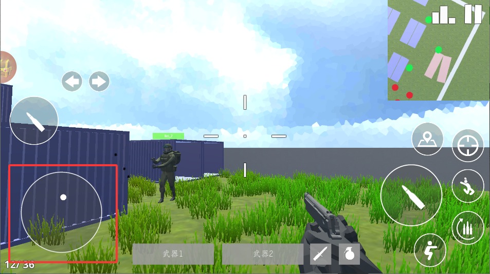 1、左侧虚拟摇杆控制角色行进方向,利用掩体进行战术移动,注意观察战场地形选择最佳进攻路线。