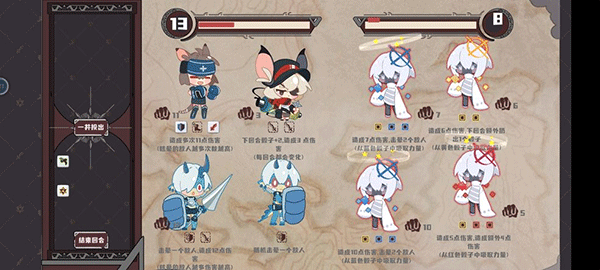 1、思路:红骑作为大型输出角色,具备超强输出能力,然而其技能启动条件极为苛刻,要求所有骰子均为红色。关键在于尽可能确保骰子带有红面,同时将自身完全用不上的角色元素彻底清除,否则红骑根本无法启动。前中期着重修改骰子,待后期阵容稳定后便可迅速收割。在此建议开局就换掉牧师,把所有黄面骰删掉,原因是牧师技能会直接随机所有剩余骰子,这与红骑技能完全冲突。当然,也能考虑带上先知,一旦能随机出全红骰子,便可稳操胜券,但这属于「红骑赌狗流」,在此不做赘述。