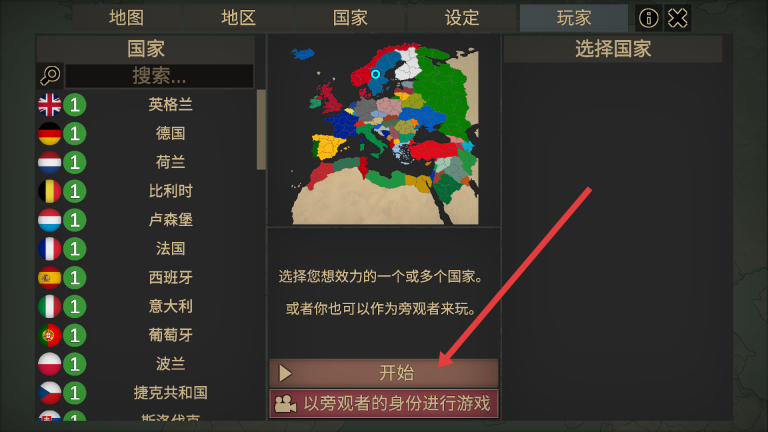 1、开局选个顺眼的国旗颜色,毕竟打仗时军旗丑了影响士气。