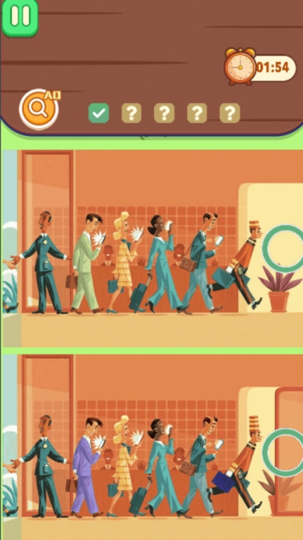 1、限定的时间内找到不同之处,才能进入下一关。