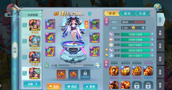 由2位SS + 级别的小伙伴组成的组合。推荐原因:技能之间能够相互配合,获取难度相对较低。其中,小龙女通过首充即可得到,六耳猕猴则能在伙伴商店里用相应资源兑换获取。