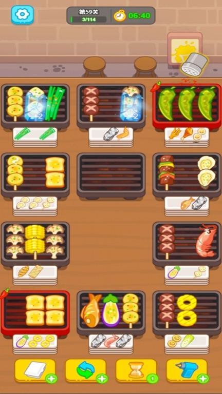 在这里,你就是烧烤摊的大掌柜!你的任务是将各种诱人的烤串完美地摆放在盘子上。三根相同的烤串碰到一起,就会奇迹般地消失,收获满满的成就感。简单的拖动和点击操作,让你轻松体验烧烤达人之旅。