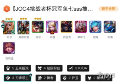 5五杀摇滚、4超级粉丝、3KDA、3刀锋领主、2舞者、2护卫、2秘术护卫
