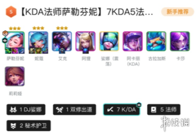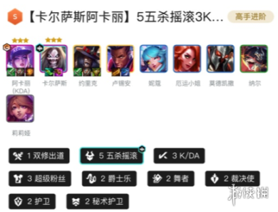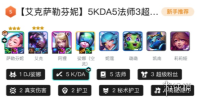 1DJ娑娜、5KDA、5法师、3超级粉丝、2真实伤害、2护卫、2秘术护卫、1高能流行