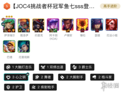 4爵士乐、3超级粉丝、3KDA、2真实伤害、2大腕射手、2耀光使、2护卫、2秘术护卫、1高能流行
