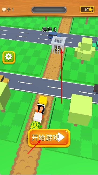 1. 开启游戏,来到关卡1的界面,点击“开始游戏”按钮,做好协助动物过马路的准备。
