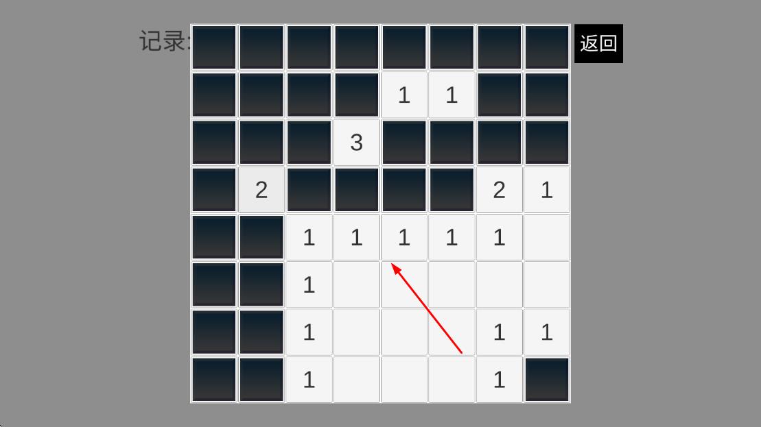 1、进入游戏后点击任意格子开启探索,根据显示的数字分析周围8格的地雷分布,初步判断安全区域。