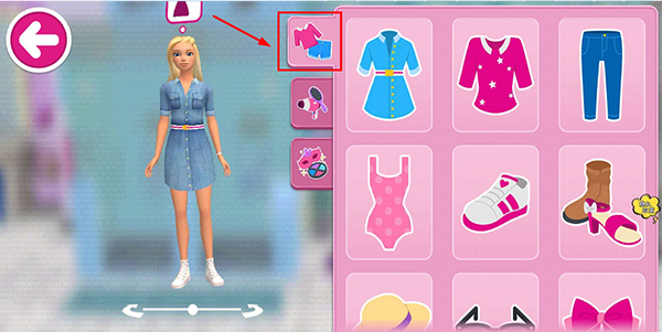 5、点击右边的衣服图标,就可以给我们的芭比更换衣物。