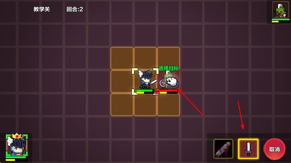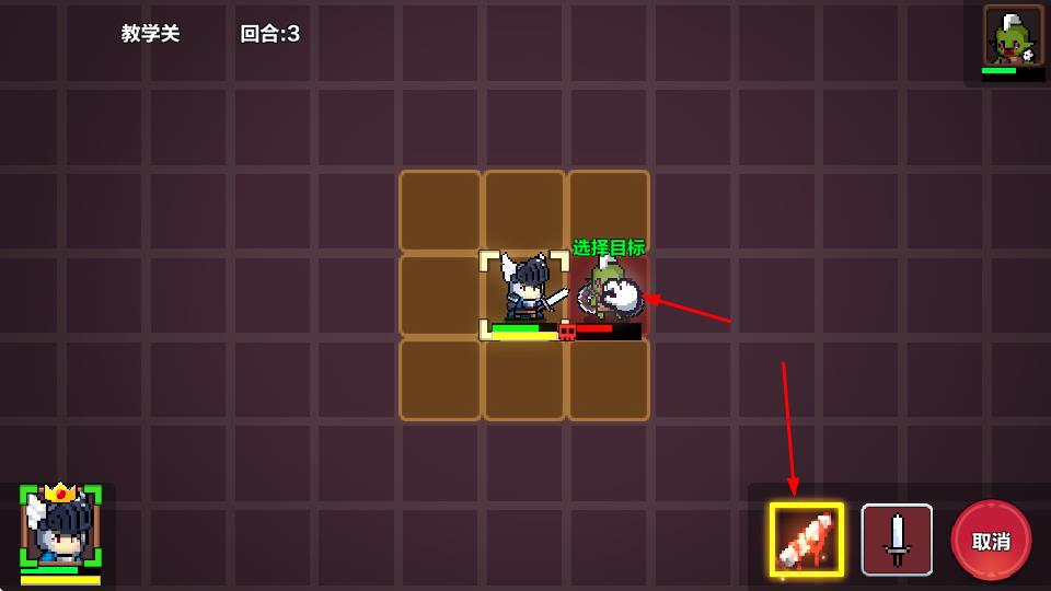 2、移动后,点击攻击按钮,选择相邻的敌方目标,进行近战攻击,减少敌方的生命值。