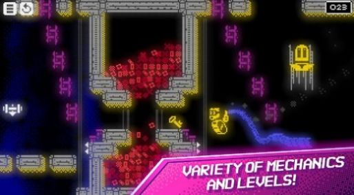 游戏画面由形形色色颜色与形状的像素构成,带来别具一格且饶有趣味的视觉感受。此外,游戏音效同样十分出众,机器人移动、跳跃之声,触发事件的声响,以及使用技能发出的声音,皆清晰可闻,助力玩家更深度地沉浸于游戏之中。