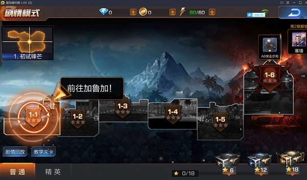 4、刚开始玩,需要通过剧情模式尽快升级,有助于提高火力,等级一定程度会限制关卡的挑战,每张图三星通关右下角会有相应的宝箱可领取,基本上奖励都一样。
