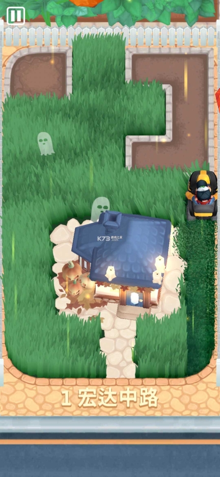 2、这款游戏还是非常适合小朋友们玩的,驾驶着你的除草机在花园里面到处跑。