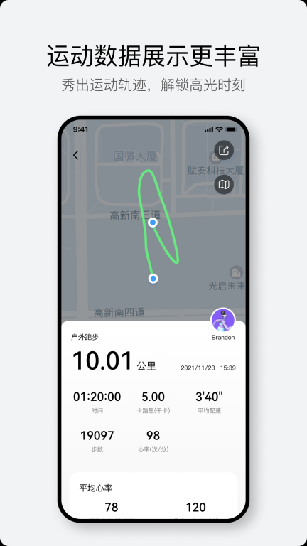 可随时追踪运动轨迹,精准计算卡路里消耗。