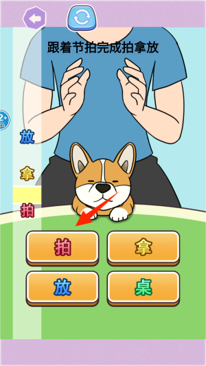 3、跟随关卡内播放的旋律节奏,精准点击底部"拍"、"抓"、"放"三个动作按钮完成挑战。