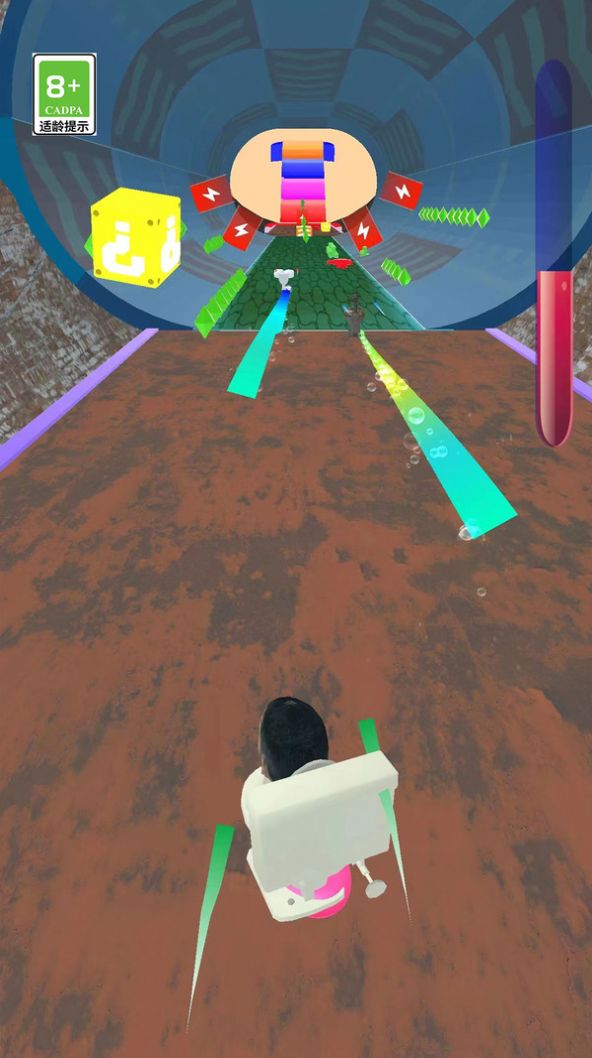 3、设置了有趣的障碍物,如跳跃的马桶盖、滚动的纸巾卷等,追逐更多挑战。