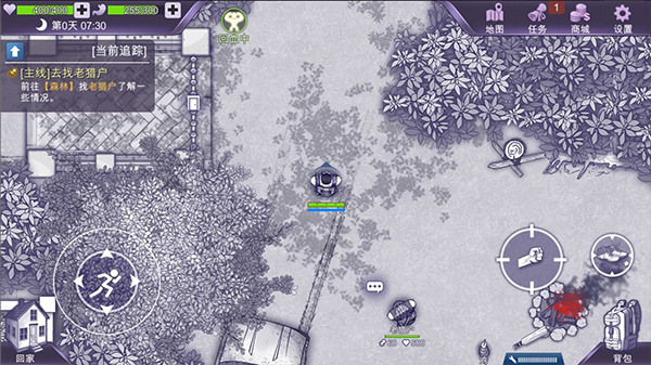 出门前记得捡上【木棒】,这个时候先不要管后院的鸡和木头,直接出门去森林找老猎户