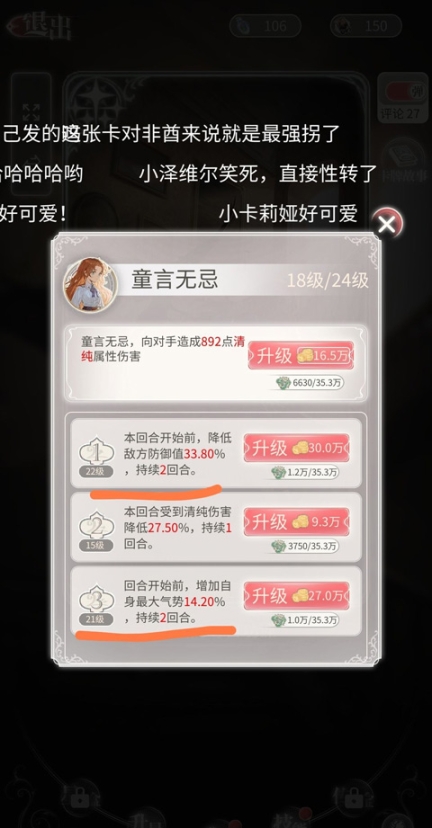 另外,这张《少女的口无遮拦(名字记不太清了)》个人认为比较好使,虽然它主技能是“清纯”巴拉巴拉,但技能1和3都是无属性的