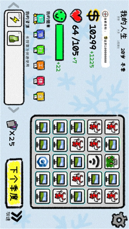 人生轨迹模拟器小游戏,是一款能带你开启别样人生的模拟游戏。在这儿,你将踏上专属于自己的人生之旅,丰富多样的人物经历都能在此尽情体验,游戏的还原度极高。此外,后续你还能解锁诸多趣味性十足的玩法,要知道,你的每一个选择,都会影响人生的发展走向与最终结局。