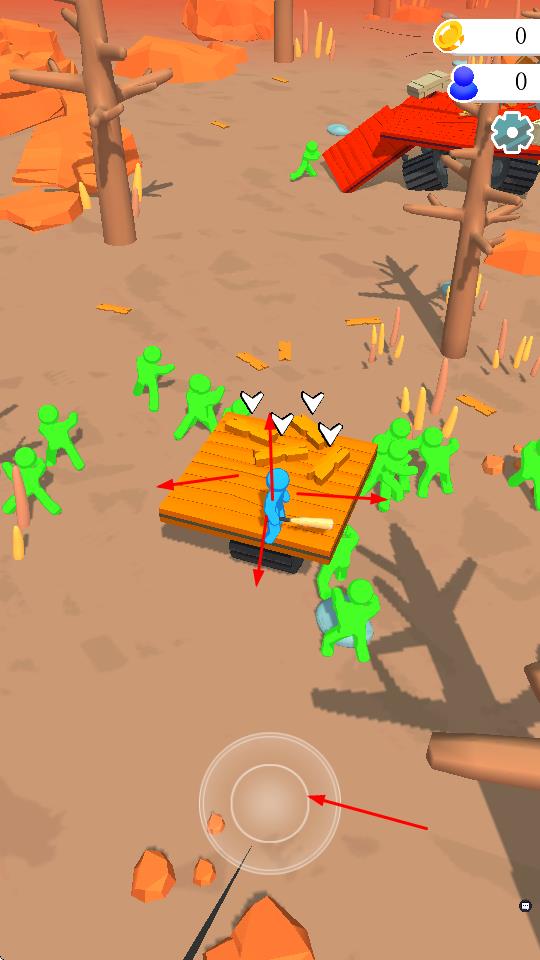 2、在场景中散布着木板和各种道具,接近并收集它们,这些可能用于建造、升级设施,或是解锁交通工具,从而提高生存和战斗能力。
