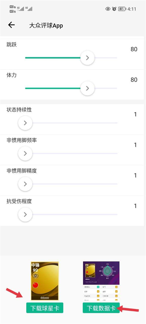 3、向下滑动,设置好能力数值后,即可点击下载角色卡和数据表。