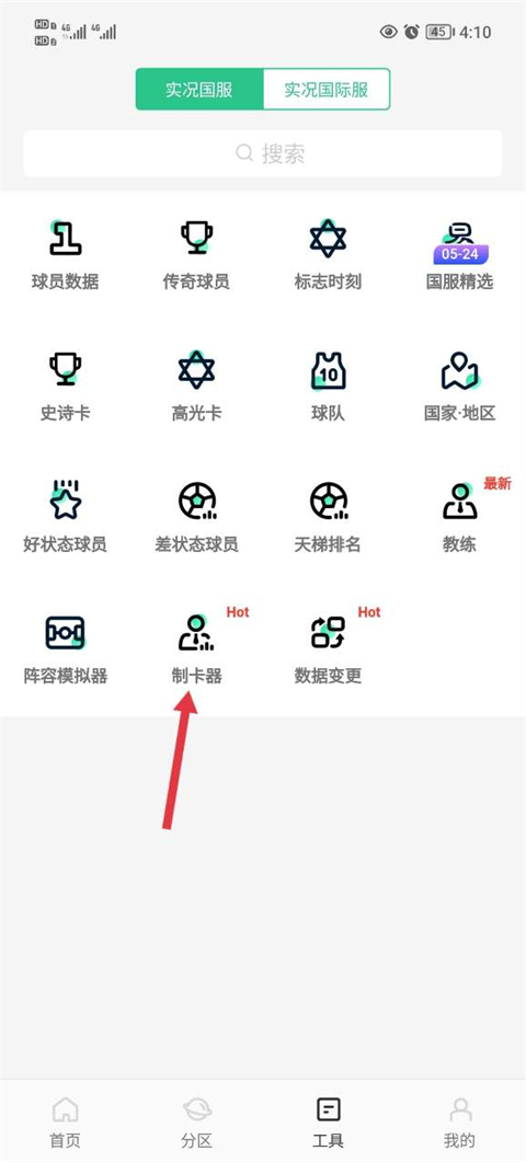 1、在工具界面选择国服或者国际服,点击球员数据。