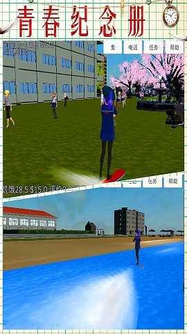 1、高品质的3D场景和角色造型,模拟日常校园内外的生活。