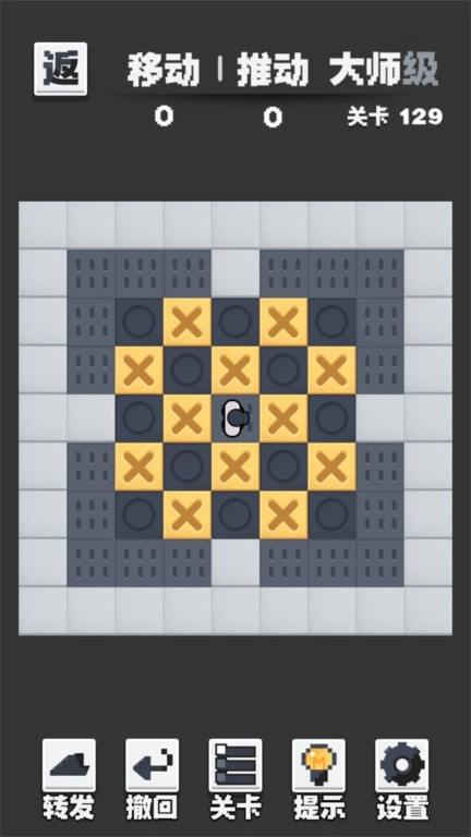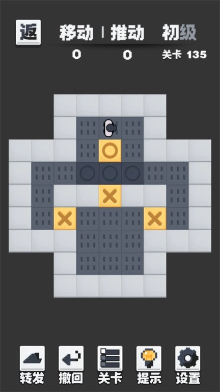 2. 图片里存在圆圈与X图案,你得操控小人推动箱子,将每个箱子放置到圆圈所在之处。