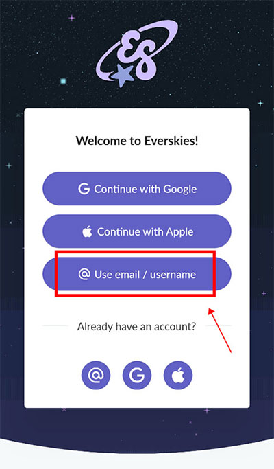 1、首先在本站下载安装好永远的天空虚拟装扮国际版,打开进入等待2~3分钟,选择登录方式“use email”。(不是bug,只是延时,需要耐心等一下)
