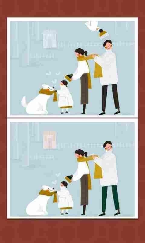 1. 在游戏关卡里,你会看到两张不一样的图片,这两张图片上存在几处不同之处,玩家得把这些不同全部找出来。