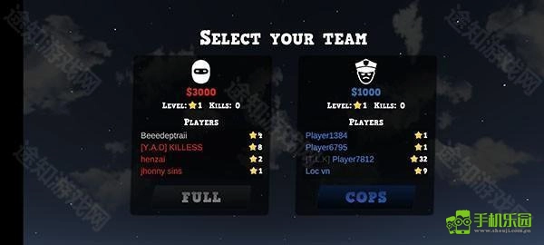 接下来需要从ROBBERS劫匪和COPS警察这两个阵营里挑选一个加入。