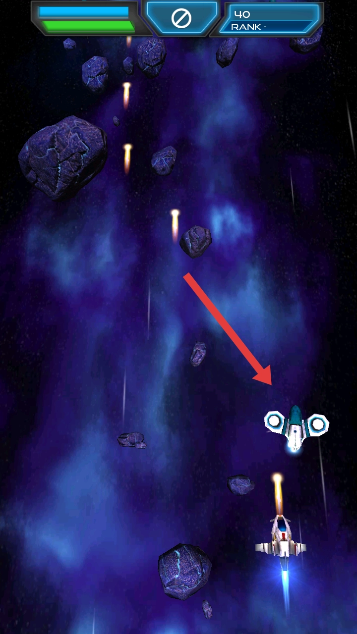 1. 进入游戏后,要操控飞船在陨石流里灵活闪躲,躲开碎石和弹道,保持存活状态,并打败对面的敌人。