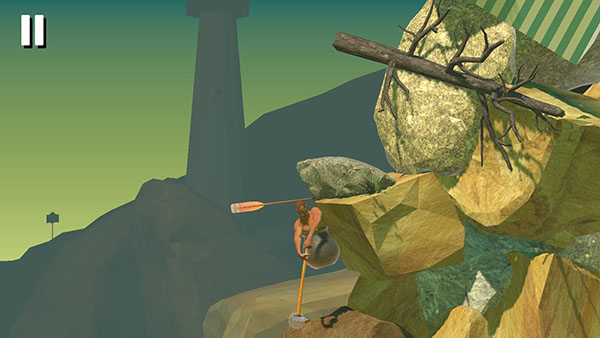 1、玩家需要爬上一座巨大的山,除了一把锤子和一个罐子,其他什么都没有。