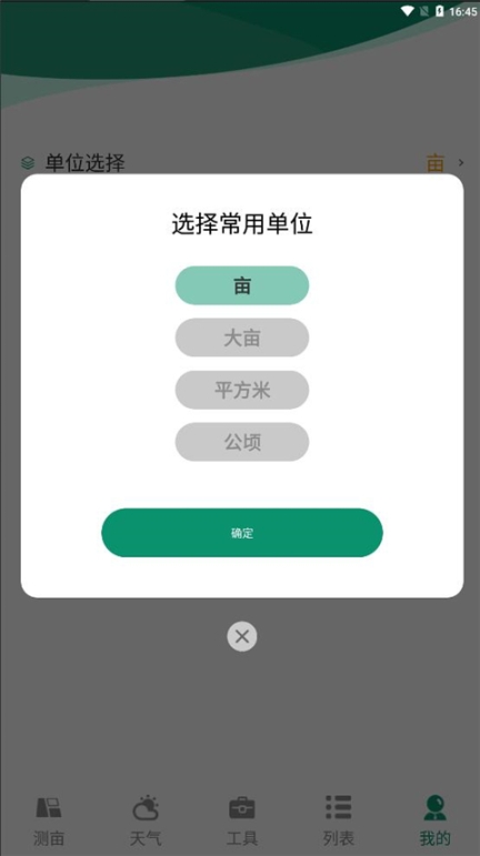 请点击「我的-单位选择」,可以设置和切换常用面积单位。