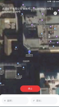 5、然后我们点击开始即可开始移动了,通过移动手机会根据定位来测量面积以及周长。