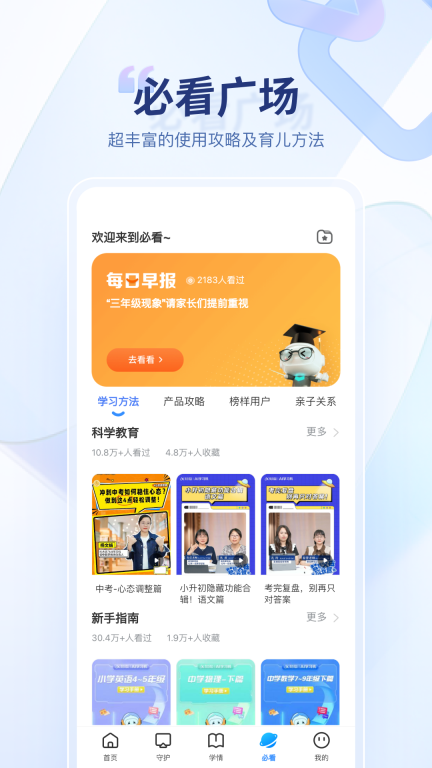 -学情:查看学习机中产生的各科目学习报告,包含日报、周报等。