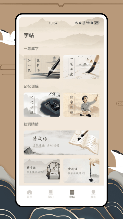 天天消成语是一款寓教于乐的手机应用,首页特色藏头诗引人入胜。学习页面不仅涵盖英语学习,还融入字帖练习,如“加一笔成字”等,寓教于乐提升记忆力。更有猜成语、猜字谜、猜谜语等趣味功能,锻炼思维,丰富知识。无论是成语爱好者还是寻求学习乐趣的用户,都能在此找到乐趣与收获。