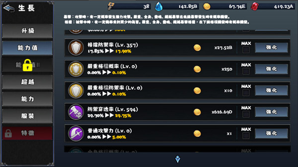 游戏中的属性项目非常多,足足有54种不同的属性,基本的攻击、体力、防御率都有,细分的暴击率、严重暴击率、全身暴击率、灵魂暴击率、超越暴击率,这游戏的属性将很多地方都细分下去,其中最重要的一条属性就是“防御穿透率”。