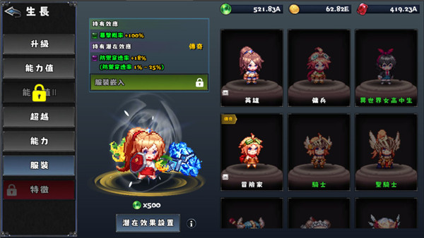 当防御穿透率达到BOSS的推荐数字,基本上都是一刀秒杀,推到更后面的地区,可以提升挂网的收益,加速战力的成长。