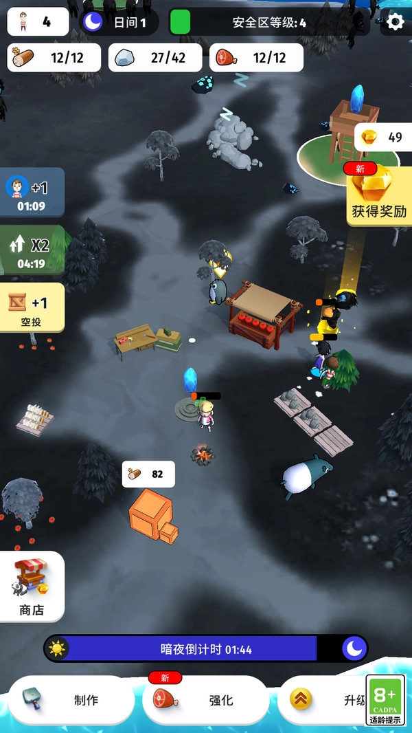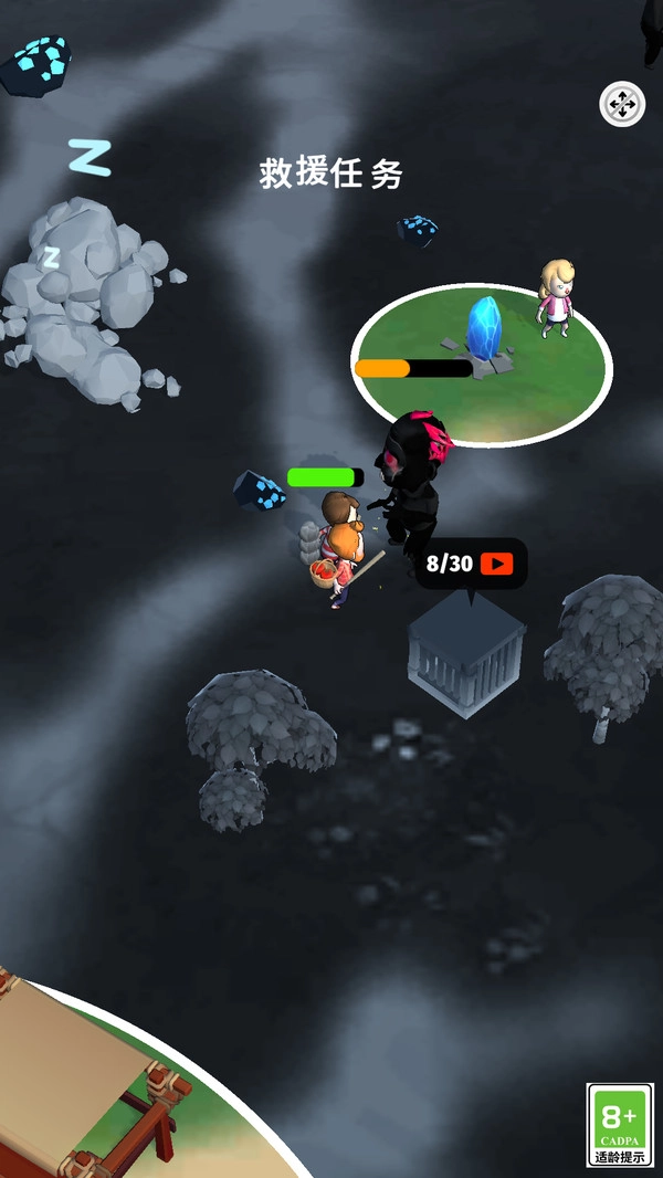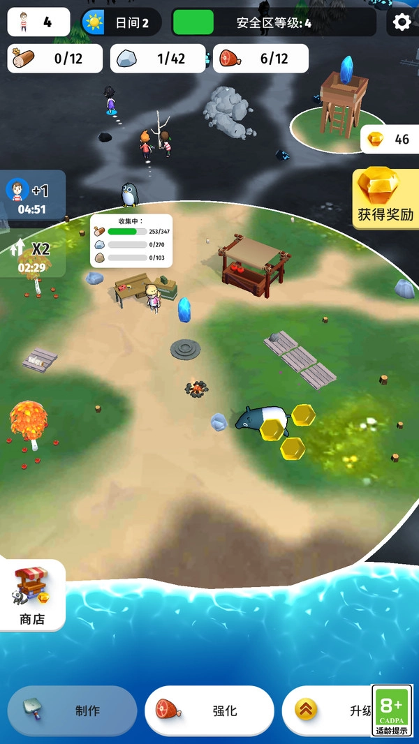 派出小英雄去采集木材、矿石之类的资源,用以升级建筑并解锁新功能。
