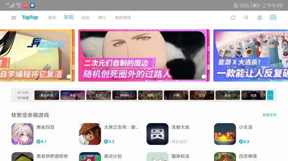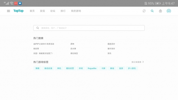 1启动已下载的软件,进入主界面后,你会看到包含【首页】、【发现】、【论坛】、【排行】以及【我的游戏】在内的多个频道。
