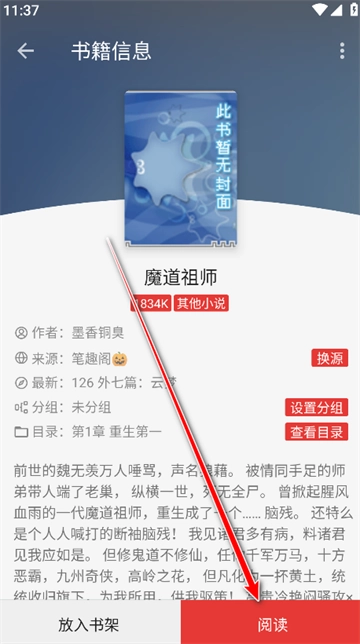 2、进入详情页点击右下方的阅读。