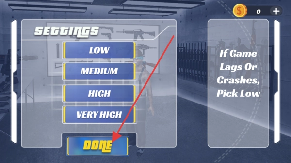 1. 在设置页面,依据设备性能挑选画质,挑选完毕后点击【DONE】保存设置,以使游戏能够流畅运行。