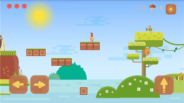 5、游戏进程越往后,难度越高。一旦不慎掉下去,或者触碰到像蜜蜂这类障碍物,就会导致角色死亡。