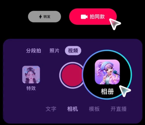 03.点击【拍同款】,点击【相册】,选择一张照片,生成视频