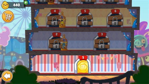 2、点击后可以选择不同的关卡来游玩,每一层都有不同的小鸟需要你去解救。