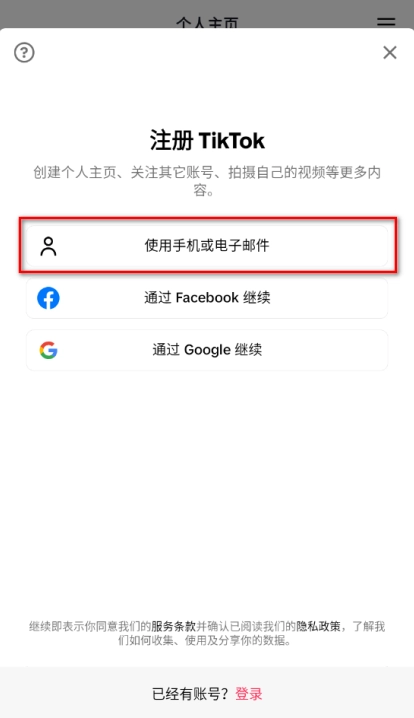 3、如果你有Google账号等,可以直接登录,我这里以手机或者电子邮件为例注册